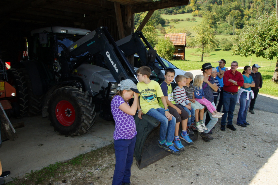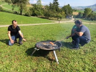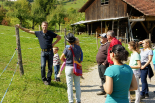 Anschliessend führte unser Weg weiter zum Talhof von Familie Schmid. Dort durften wir unser Zmittag grillieren, wichtiges über den Hof und die Tiere erfahren und uns im Stall umsehen.